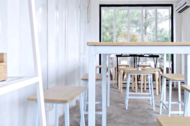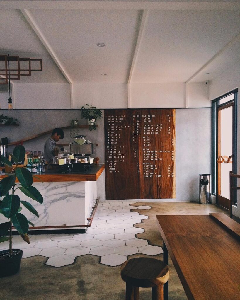 Kafe yang berlokasi di Jalan Panglima Polim V Nomor 25B, Dharmawangsa, Jakarta Selatan, berkonsep all white dengan desain semi industrial. Kursi dan meja kayu yang ditata rapi dan tak terlalu rapat membuat ruangan tampak lega dan enak dipandang.
