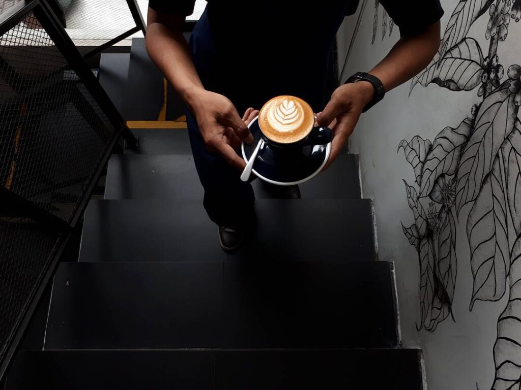 Kamu bisa memotret kopi berlatar ruangan yang menyerupai co-working space. Waktu terbaik mengunjungi kafe ini adalah siang menjelang sore.