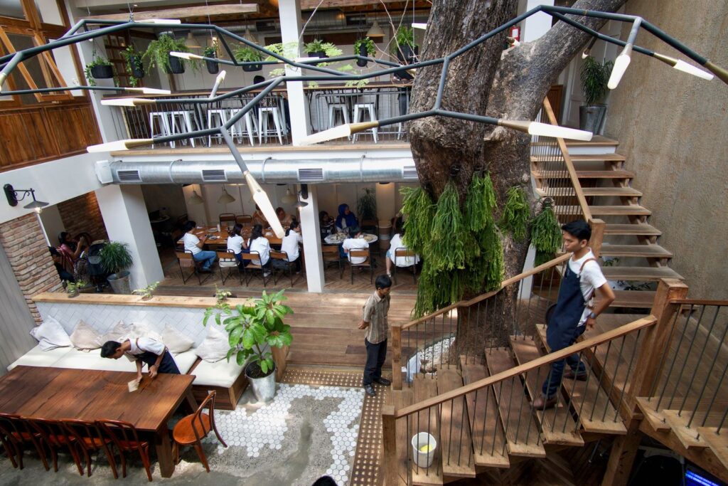 Kafe yang berlokasi di Jalan Suryo, Nomor 23, Senopati, Jakarta Selatan, ini memiliki kursi-kursi panjang ala industri dan co-working space. Kafe tersebut memungkinkan para pengunjung terhubung satu sama lain, mengobrol, dan bersantai bersama.
