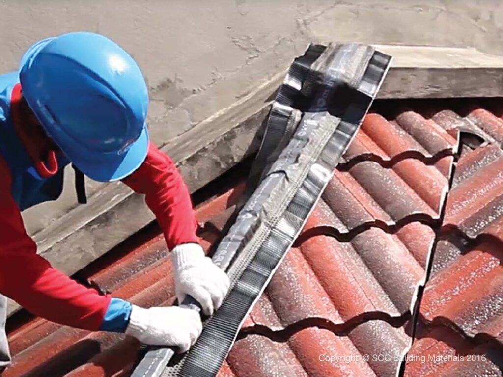 Untuk kebocoran di atap, menggunakan semen untuk memperbaiki masalah bukanlah solusinya. Misalnya, genteng yang retak harus diganti. Jika beton yang melekat pada punggungan bubungan atau punggungan pinggul memiliki masalah kebocoran, solusinya adalah mengganti penutup genteng dan semen lama untuk menginstal ulang bagian yang bocor. Dianjurkan juga untuk mengubah ke Dry tech system.