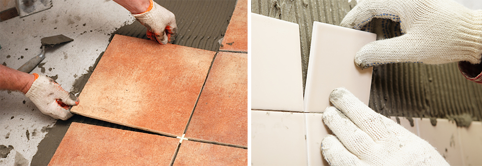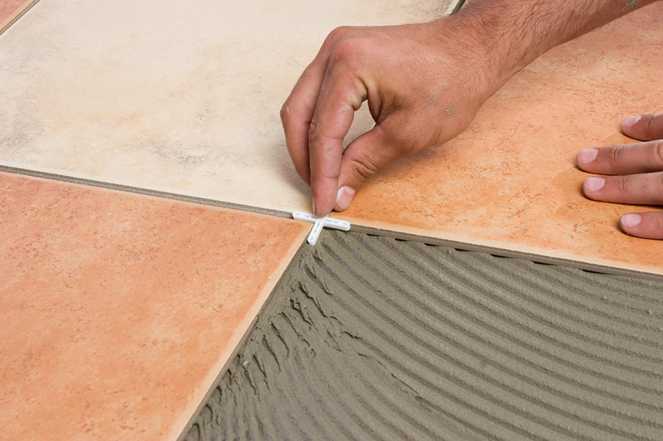 Memasang keramik untuk menghasilkan performa yang maksimal harus menggunakan tile grout (nat keramik): aplikasikan tile grout dengan menggunakan trowel karet ke seluruh area dan bagian belakang keramik, letakan keramik di titik yang telah ditandai, lalu gunakan palu karet untuk leveling. Setelah selesai meletakan keramik, biarkan tile grout mengering setidaknya selama 24 jam, dan biarkan setidaknya selama 7 hari sebelum akhirnya area dapat dimasuki (mengingat tile grout membutuhkan waktu 7 hari untuk mengeras sempurna). Dengan cara ini, tile grout dapat menahan keseluruhan lantai keramik, sehingga tidak akan ada masalah dengan lantai keramik yang retak sebab ruang kosong di bawah lantai keramik dan air akan sulit rembes. Hal ini akan mengurangi noda putih pada permukaan lantai keramik akibat reaksi hidrasi dari air dan semen di bawah lantai keramik.