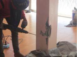 Pertama, harus ada rasuk atau balok pendukung untuk membantu menahan beban kolom, lalu pahat beton yang retak untuk membuka area sekitar palang baja yang berkarat.