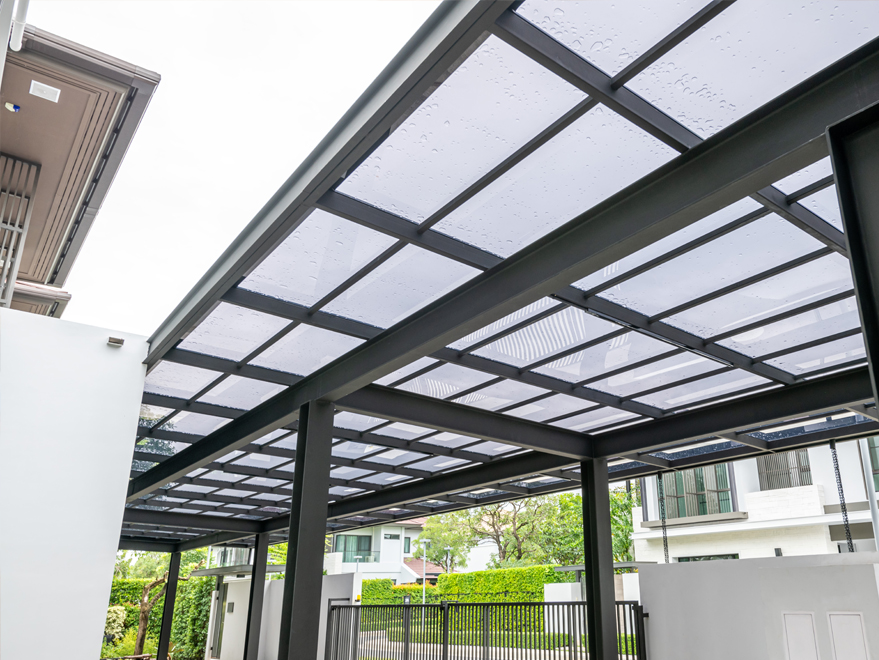 Selain rangka besi kaca, Anda bisa menggunakan atap akrilik transparan Shinkolite kelas Heat Cut dari SCG. Produk atap SCG ini memiliki keistimewaan dalam perlindungan panas dengan tampilan yang indah dan tahan lama. Cocok untuk ruangan yang membutuhkan aksen transparan yang nyaman.