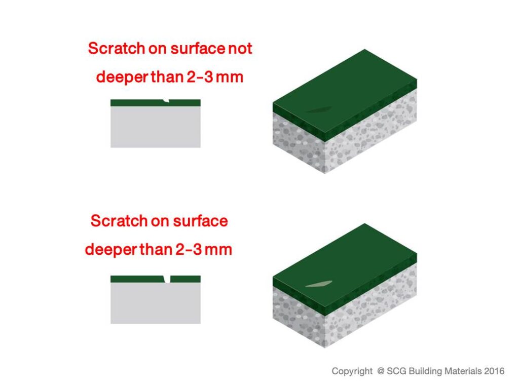 Goresan pada permukaan yang dalamnya tidak lebih dari 2-3mm