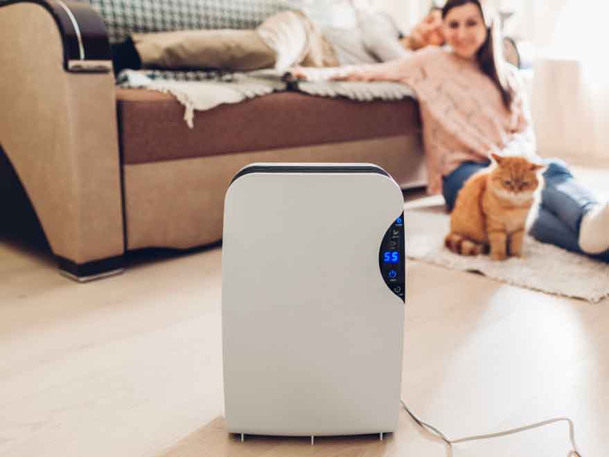 Kondisi ruangan yang lembap bisa terjadi karena beberapa hal namun faktor utamanya adalah sirkulasi udara yang buruk dan kebocoran. Oleh karena itu, Anda harus memastikan bahwa konstruksi bangunan Anda sudah didesain dengan baik dengan menghadirkan ventilasi udara yang cukup. Sebagai alternatif, Anda bisa menggunakan dehumidifier di ruangan tersebut agar udara bisa dibuat lebih kering secara elektronik.