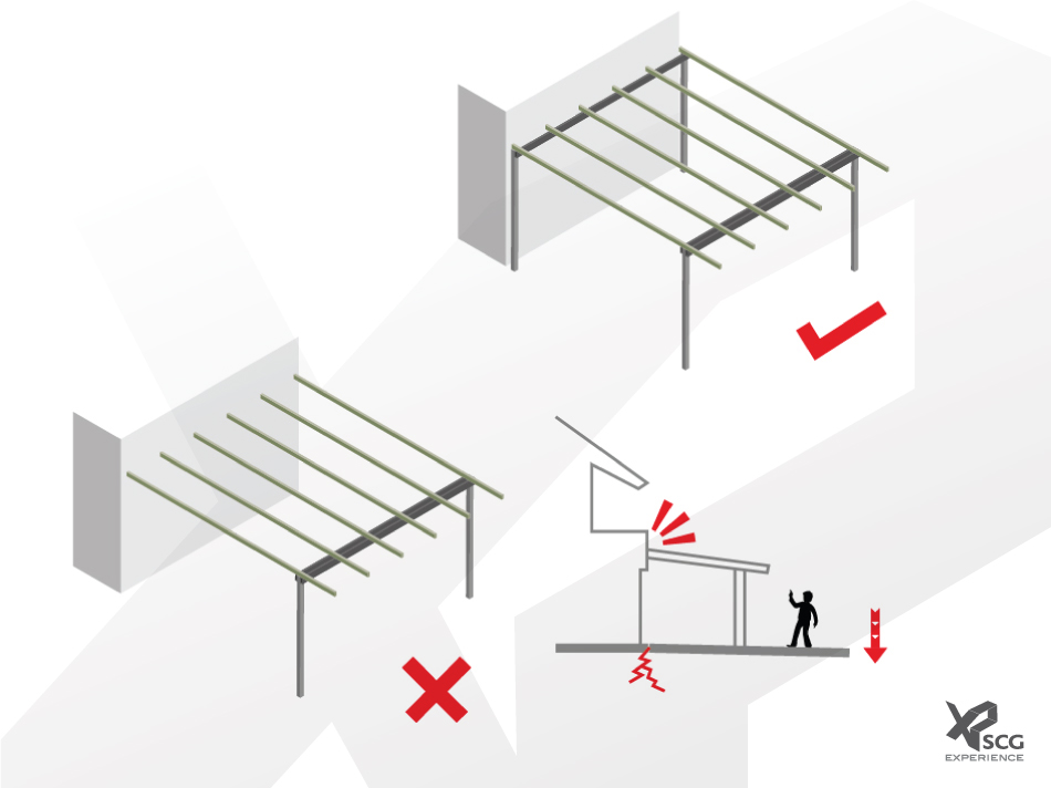 Setelah lantai beton selesai, struktur tiang harus dibangun untuk menopang atap baru tanpa menambah lebih banyak beban ke struktur asli rumah. Hal ini akan membantu mencegah struktur baru memengaruhi struktur asli rumah jika saja terjadi deteriorasi di area ekspansi, (Jika perlu, untuk memasang struktur baru ke struktur asli rumah, pasang sambungan penghubung untuk memungkinkan adanya gerakan).