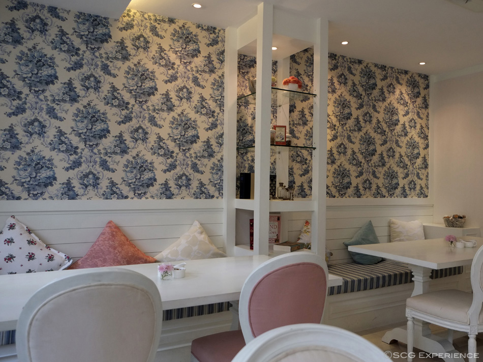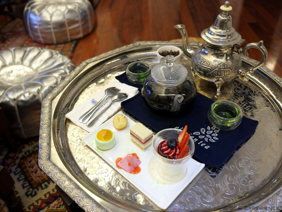 Adapun pilihan tehnya, rumah teh ini memilih secara cermat teh organik dari bagian utara Thailand dan menyatukannya dengan bahan-bahan lokal. Perpaduan ini menciptakan 27 jenis teh dengan rasa yang berbeda seperti teh Kalon yang merupakan kombinasi dari teh hijau, peppermin, dan bunga kacang. Selain warna-warna yang menarik dan aroma yang menyenangkan, campuran teh ini memiliki kualitas herbal yang baik untuk sistem pencernaan. Saat musim panas, mengapa tidak mencoba es teh Elysian yang terdiri dari semangka yang menyegarkan dengan teh hitam dan rasa manis dari sirup melati. Teh panas dan es disajikan dengan hidangan penutup buatan sendiri. Sudah dipastikan bahwa setiap menu hidangan penutup akan cocok dengan teh pilihan Anda.