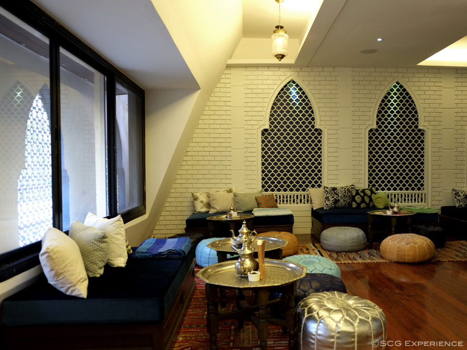 Dar al Rumi adalah ruangan dengan gaya Maroko putih dan biru. Pintu masuknya menggunakan pintu lipat vinil putih sementara dindingnya menggunakan desain bata putih. Bagian-bagian tertentu memiliki lubang untuk mencocokkan pintu lengkung dan jendela yang merupakan identitas Maroko. Barang-barang dekoratif yang digunakan adalah lampu, meja, dan teko indah. Lantai kayu dipilih untuk mencocokkan desain elemen kamar. Budaya teh Maroko meliputi duduk dekat meja dalam kelompok. Oleh karena itu, Elysian Tea menyediakan meja kecil dengan bantal yang membuatnya terlihat santai dan ramah untuk menikmati secangkir teh.