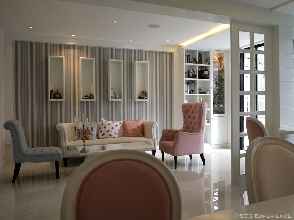 Rumah teh ini memiliki dua lantai. Setelah masuk, Anda bisa merasakan aroma teh di resepsi di lantai pertama. Di lantai dua, ruangan dibagi menjadi tiga bagian. Setiap bagian dibagi menurut budaya teh yang disukai Adulaya.