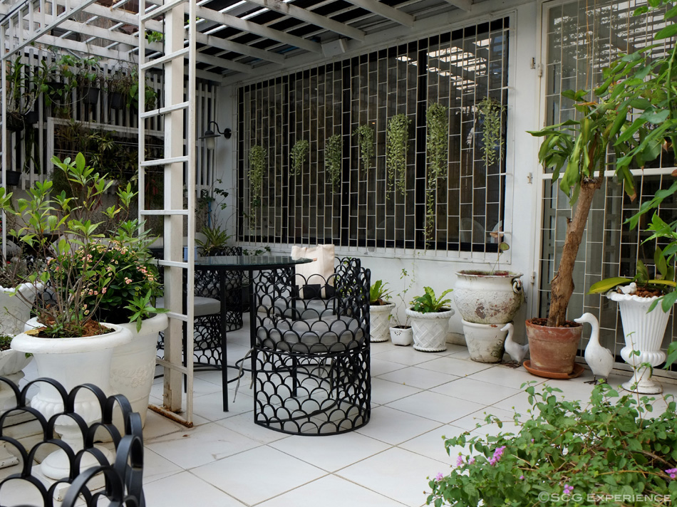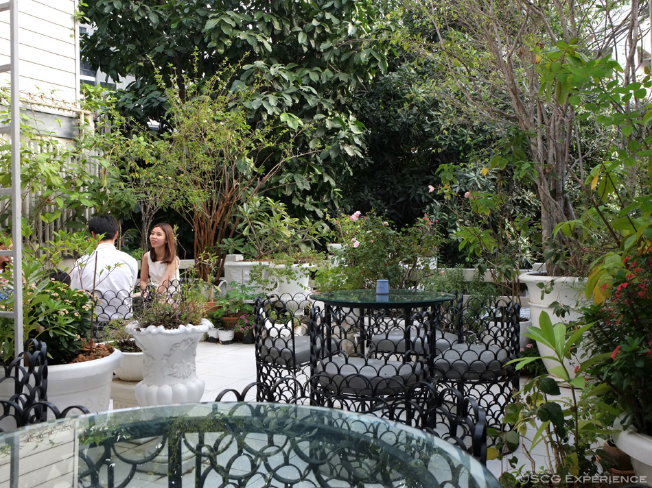 Garden Terrace adalah taman teras kecil dengan panel kayu putih, ubin lantai, dan pot bunga. Bunga dan tanaman yang berwarna-warni adalah pelukis alami di ruang yang menyegarkan dan teduh ini. Set meja besi tempa hitam yang anggun diatur dengan baik untuk menawarkan sudut pribadi untuk percakapan teh dan relaksasi. Untuk sementara waktu, Anda dapat mengisolasi diri dari suasana kota yang ramai.