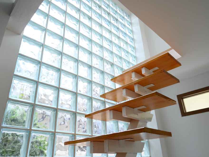 Glass block atau balok kaca adalah jenis bahan bangunan yang umum digunakan di rumah era 80-an. Biasanya, balok kaca digunakan sebagai sarana cahaya matahari untuk masuk ke dalam rumah tanpa mengganggu privasi para penghuni rumah tersebut. Meskipun tampak old school, balok kaca masih bisa digunakan sebagai bagian dari konstruksi bangunan rumah minimalis masa kini.