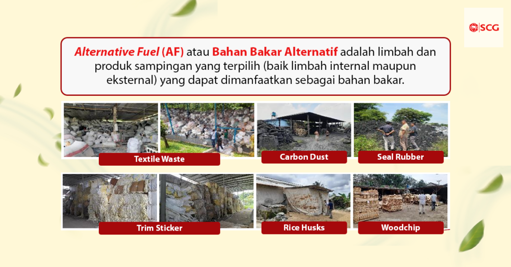 Pemanfaatan limbah maupun produk sampingan menjadi bahan baku adalah salah satu target dari PT Semen Jawa SCG. Pemanfaatan alternatif fuel semen Jawa atau bahan bakar alternatif ini menjadi solusi SCG dalam memproduksi semen.